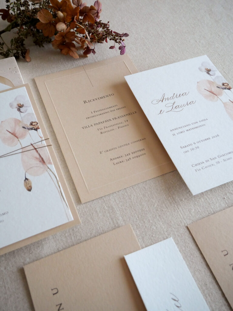 Dico sempre che le partecipazioni sono il biglietto da visita del vostro evento: dovranno parlare di voi, del vostro amore, della vostra storia e delle vostre passioni.